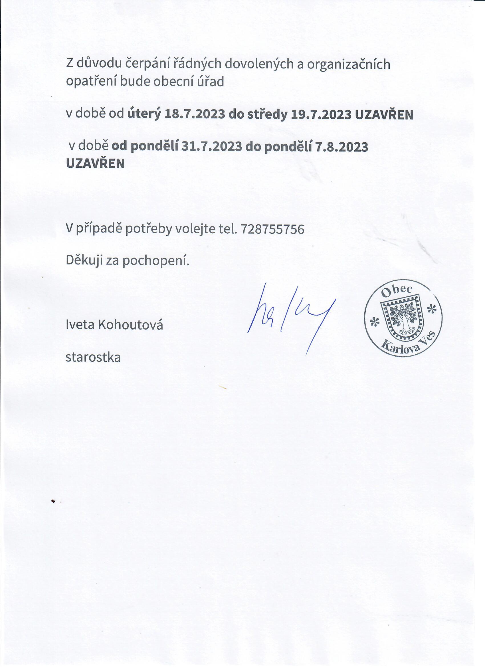 Dovolená- omezení provozu OÚ
