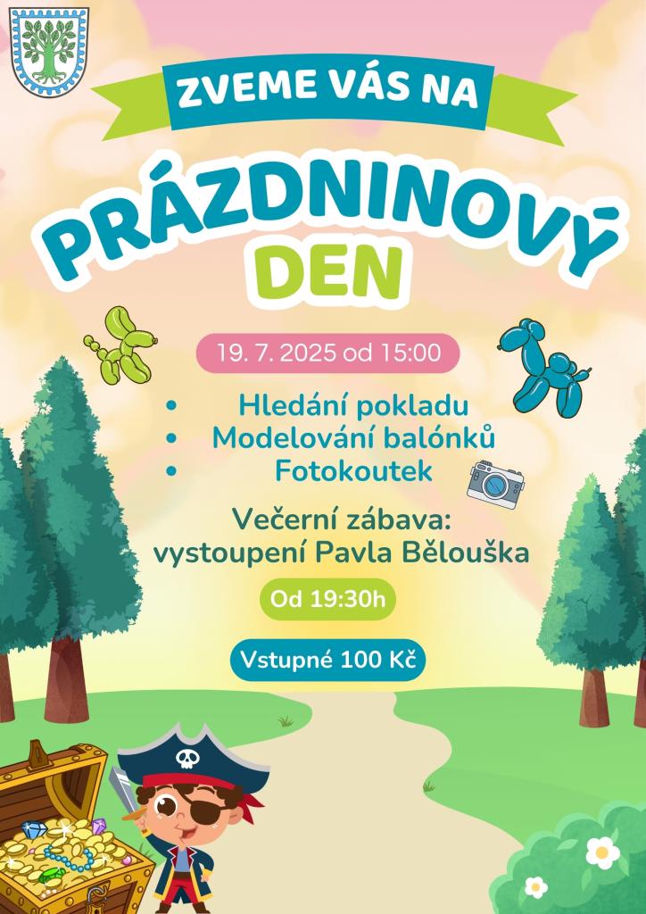 Zveme vás na jedinečnou akci, která slibuje zábavu pro celou rodinu! Odpoledne zahájíme hledáním pokladu, které doplní modelování balónků a možnost pořídit si fotku ve fotokoutku. Na závěr večera se můžete těšit na vystoupení Pavla Bělouška. Nezapomeňte, vstupné je 100 Kč.