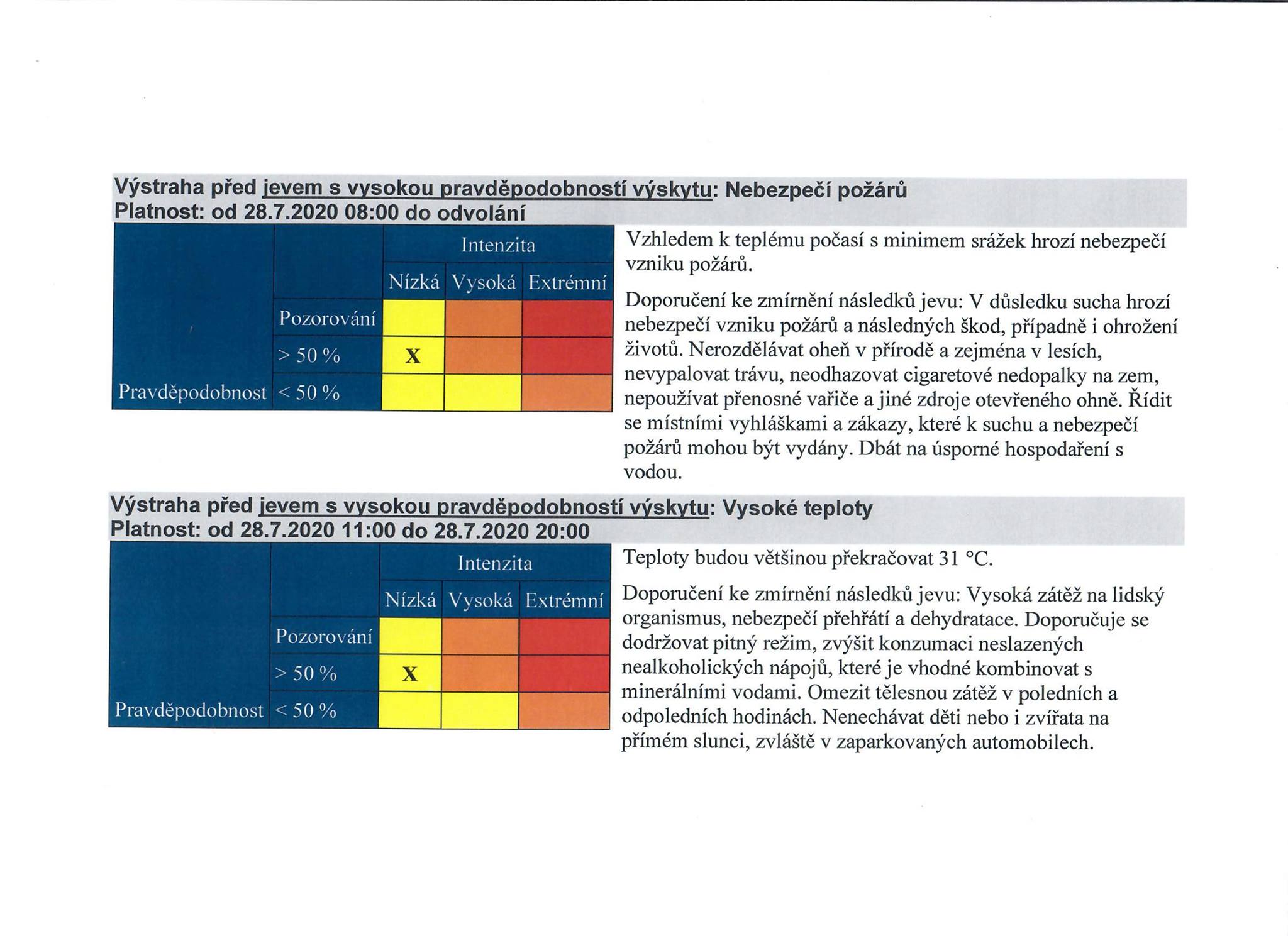 Výstraha od 28.7.2020 od 8.00 do odvolání